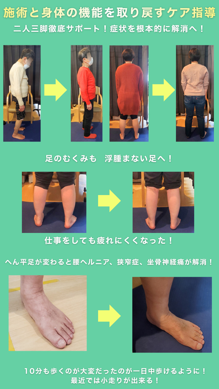 ここまで良くなったのは先生に会えたのもラッキーだと感じています。これからも私の足と体を見守ってほしい!「ついていきます!」という気持ちで、自分の体を大切にしていきます。