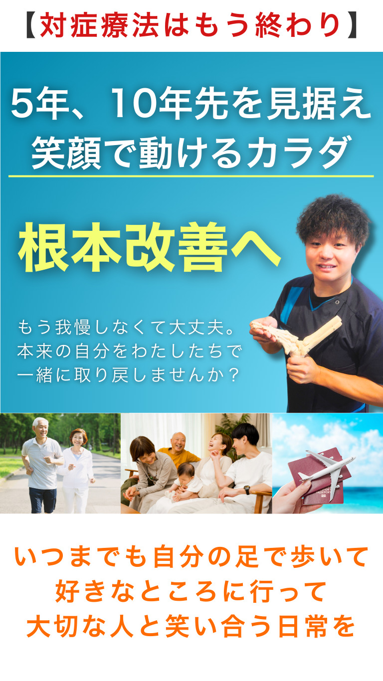 当院では、この状況を打開するため、その場しのぎではない、根本的な改善を目指した施術と指導を提供いたします。